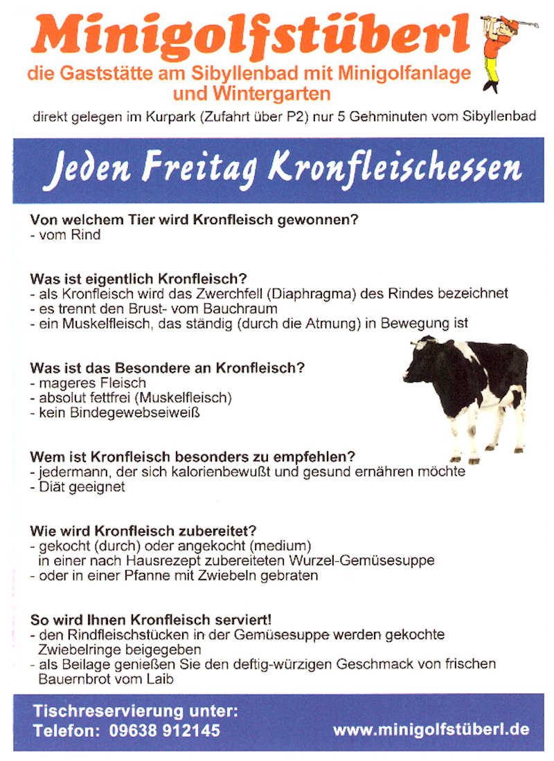 eden Freitag Kronfleischessen in zwei verschiedenen Zubereitungsvariationen ( Im Wurzelsud oder gebraten)